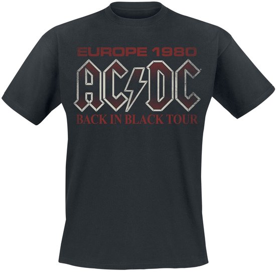 T-shirt AC/ DC Back In Black Europe 1980 noir M Katoen Homme - Produits dérivés du groupe, Groupes