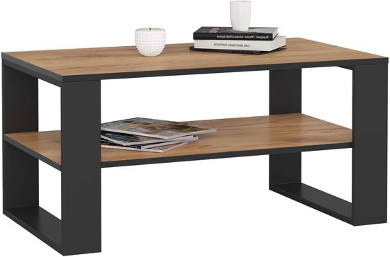 Table basse Domi Chêne Artisan/ Zwart, 92 x 45 x 53 cm, Parquet stratifié mat, À monter soi-même