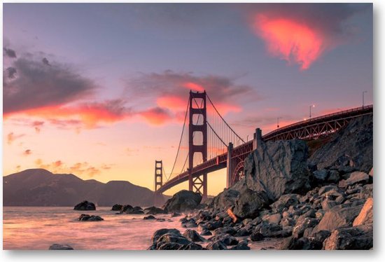Golden Gate Bridge - Coucher de soleil - San Francisco, Californie - 90 x 60 toile paysage - paysage