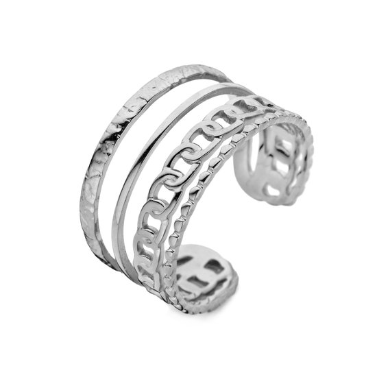 CO88 Collection 8CR-10045-56 Ring ouverte en acier multicouche - Acier - Taille 56 - Argent