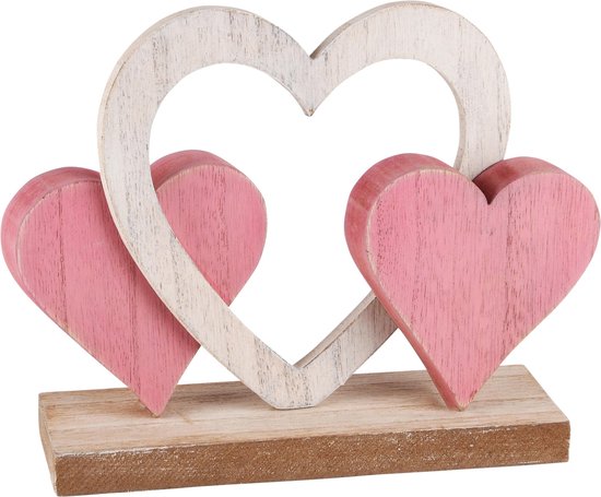 Décoratif | Trio de coeurs sur pied, rose/blanc, bois, 20x16x6cm | A230683