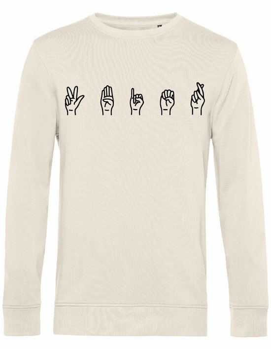 7431 - Sweater - Gebarentaal; 3 Bier-Off White-M