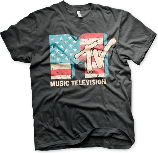 MTV Tshirt Homme -L- Distressed USA Flag Zwart