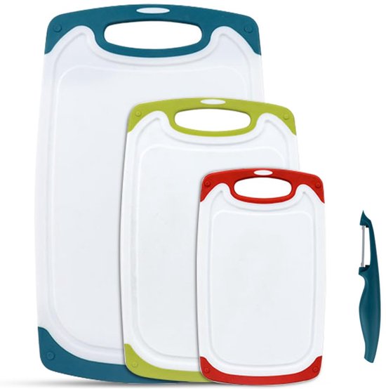 Set de planches à découper de Cuisine en plastique Inovra ® en trois pièces avec rainure antidérapante et pour jus