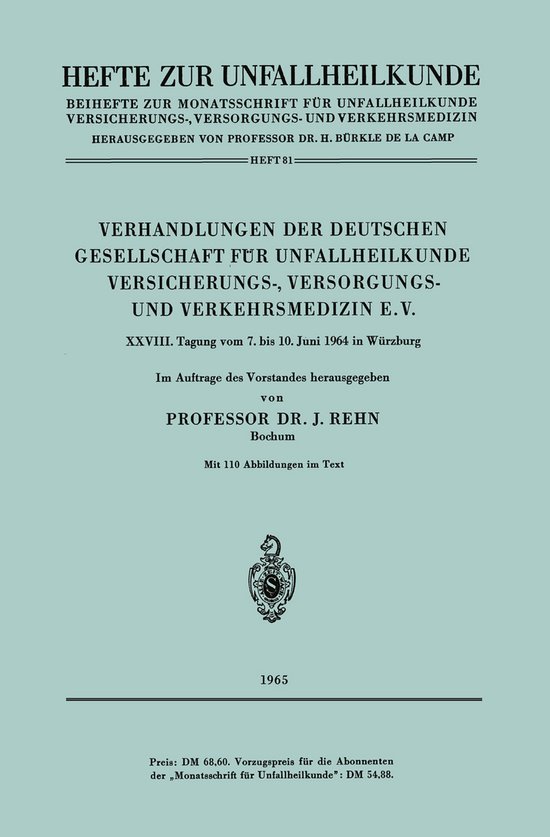 Verhandlungen Der Deutschen Gesellschaft Für Unfallheilkunde Versicherungs-, Versorgungs- Und Verkehrsmedizin E.v.