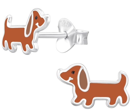 Joie|S - Boucles d'oreilles chien en argent - 9,7 x 6 mm - teckel marron - boucles d'oreilles enfant