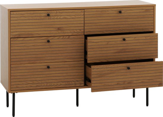 Commode MCW-N78, buffet, 6 tiroirs, style scandinave métal bois mélaminé MVG 85x120x40cm ~ naturel