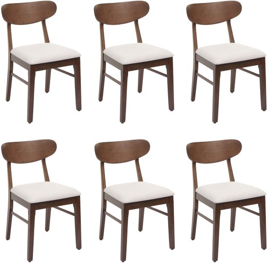 Set de 6 chaises de salle à manger MCW-M59, chaise de cuisine, tissu/textile bois massif ~ cadre foncé, crème