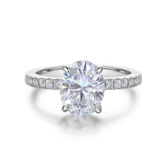 Nina - Ring Moissanite ovale en argent avec pierres latérales pavées - 3 carats