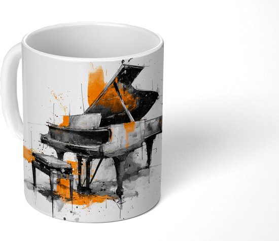 Mug - Mug à café - Piano - Oranje - Zwart - Lignes esquissées - Mugs - 350 ml - Tasse - Mugs à café - Mug à thé