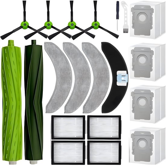 Kit de remplacement PolkaHome® 20 pièces pour iRobot Roomba Combo J7+/J9+/10 Max : 2 brosses principales, 4 brosses latérales, 4 filtres HEPA, 4 sacs d'aspirateur, 4 serpillères, 1 tournevis, 1 brosse et lame 2 en 1 – Accessoires et pièces