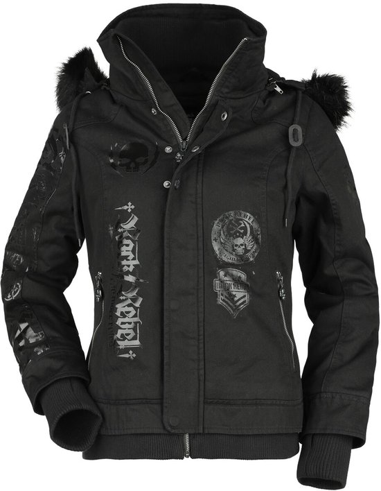 Veste d'hiver noire Rock Rebel by EMP avec imprimé au dos - Femme - M