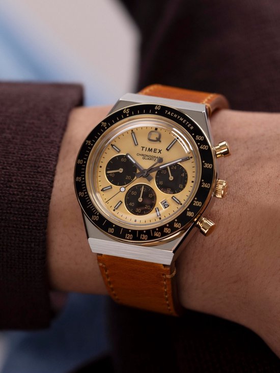 Timex Q Timex Chronographe Quartz Analogique Chronographe Marron Boîtier : 100 % acier inoxydable | Bracelet : 100 % cuir 40 mm TW2W64300AJ, TW2W64400AJ
