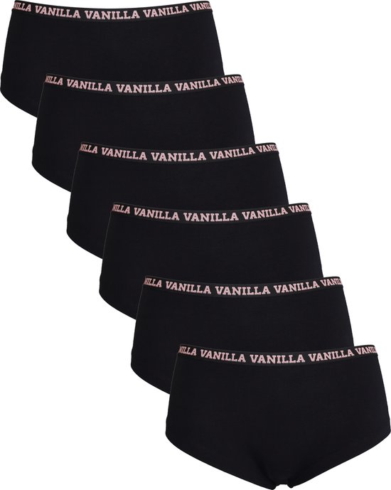 Vanilla - Hipster dames, Sous-vêtements dames, Lingerie - 6 pièces - Coton égyptien - Zwart - L