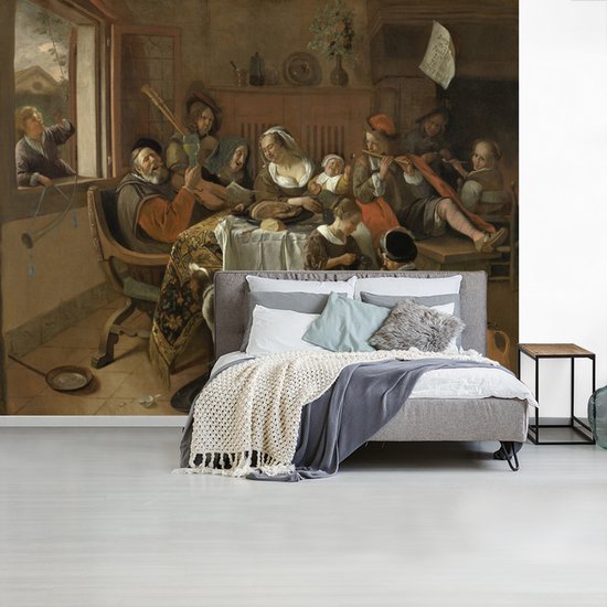 Papier peint vinyle - La famille joyeuse - Peinture de Jan Steen largeur 325 cm x hauteur 260 cm - Tirage photo sur papier peint (disponible en 7 tailles)