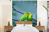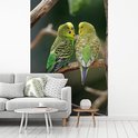Papier peint vinyle - Deux perruches dans un arbre largeur 190 cm x hauteur 280 cm - Tirage photo sur papier peint (disponible en 7 tailles)