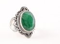 Bague artisanale en argent avec émeraude - taille 16,5