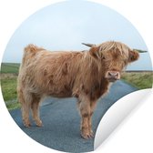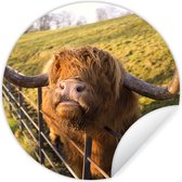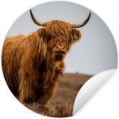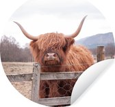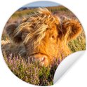 WallCircle - Stickers muraux - Cercle Papier Peint - Highlander écossais - Bruyère - Herbe - Animaux - 140x140 cm - Cercle Mural - Auto Adhésif - Autocollant Papier Peint Rond