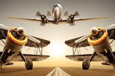 Papiers Papier peint photo - Avion Vintage noir et blanc, impression de qualité supérieure, y compris la colle à papier peint