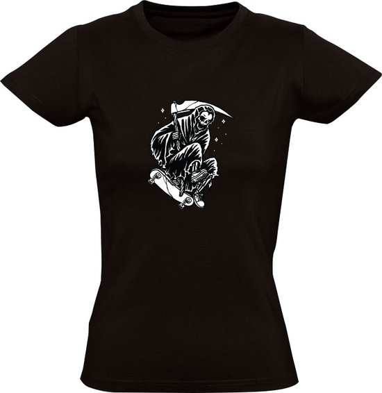 T-shirt Femme Grim Skater | skateboard | sport | patiner | demi-lune | Halloween | moissonneuse | Noir