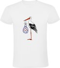 Cigogne bébé livreur imprimé sur un joli T-shirt.