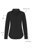 Découvrez le chemisier de voyage polyvalent Mi Piace en noir intemporel. Idéal pour les femmes en quête de style et de confort lors de leurs voyages.