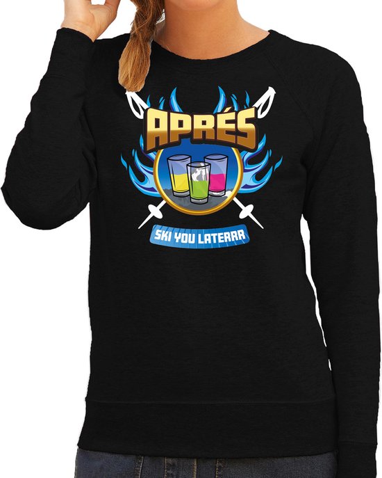 Pull habillé de sports d'hiver Fout pour femme en noir. Ce joli pull est imprimé du texte : Apres ski you later ! Trek ce pull lors de vos prochaines vacances aux sports d'hiver si vous êtes toujours présent au refuge de l'Après Ski ! Le pull est également un cadeau amusant à offrir à votre copain d'après-ski. Bien sûr, c'est aussi amusant à porter au carnaval ou à une soirée à thème. Matières : 80% coton/20% polyester, qualité 240 grammes. Merk: Bellatio Decorations.