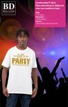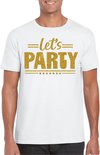 T-shirt habillé pour homme en blanc avec imprimé pailleté doré. Ce joli T-shirt est imprimé avec le texte : Let's Party. Vous avez bientôt une mauvaise party, un carnaval ou une autre fête pailletée et glamour ? Alors ce T-shirt est indispensable ! La chemise est également agréable à offrir ou à porter lors d'une sortie. Matériel: 145 grammes, 100% coton. Merk: Bellatio Decorations.