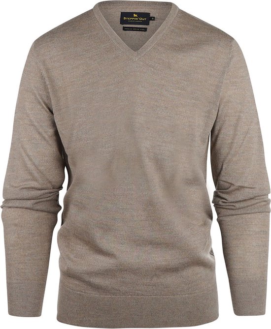 Pull Steppin' Out Col V Laine Mérinos Taupe - Taille 3XL - Homme