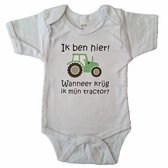 Combinaison Witte avec "Je suis là ! Quand vais-je recevoir mon tracteur ?" - taille 56 - vert, cadeau, cadeau de maternité, drôle, cadeau, bébé, texte, tracteurs, fermier, agriculteurs, fermière