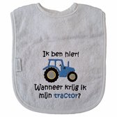 Bavoir Witte avec "Je suis là ! Quand vais-je recevoir mon tracteur ?" - doux, cadeau de maternité, cadeau, baby shower, bleu