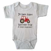 Combinaison Witte avec "Je suis là ! Quand vais-je recevoir mon tracteur ?" - taille 56 - rouge, cadeau, cadeau de maternité, drôle, cadeau, bébé, texte, tracteurs, fermier, agriculteurs, fermière