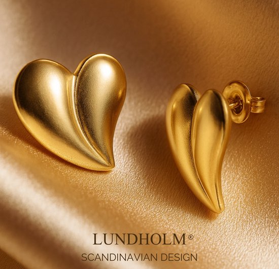 Lundholm Boucles d'oreilles Femmes Cœur – Grandes Boucles d'oreilles Or Premium Stainless Steel Gold Plated – Mes Hartjes Boucles d'oreilles couleur or – Waterproof Jewellery & Hypoallergène – Incluant Emballage Cadeau de Luxe