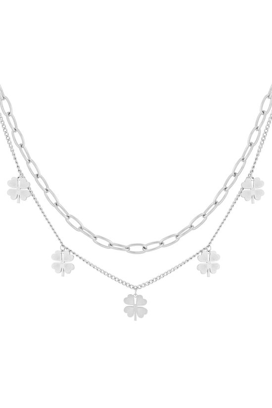 Chaîne pour Dames Couleur Argent – Double Couche – Breloques Trèfle à Quatre Feuilles - Bijoux pour Dames - Bijoux