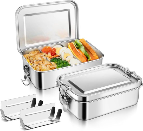 Récipients de conservation en acier inoxydable 1400 ml - Boîte à lunch pour Meal Prep - Bento Box - Boîte à pain en acier inoxydable - Étanche & Résistant au lave-vaisselle - XL