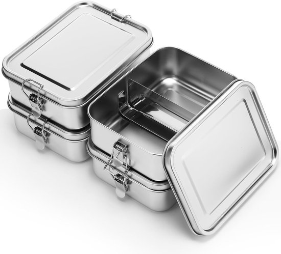 Lot de 4 Boîtes de conservation en acier inoxydable 1 400 ml - Boîte à lunch - Boîte à lunch en acier inoxydable - Boîtes de Prep des repas - Boîte à lunch - Boîte de rangement