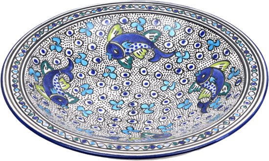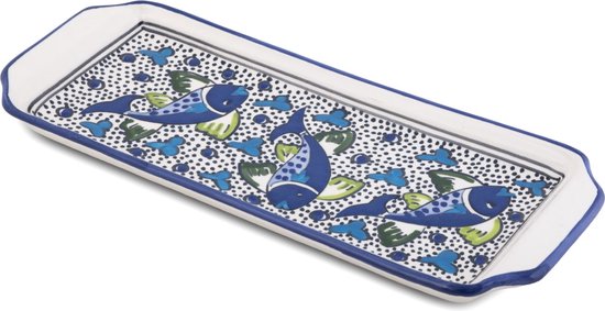 Bol à gâteau Poisson bleu blanc bol de service fait main 35 x 14 cm | CP.PO.30 | Plats & Déco