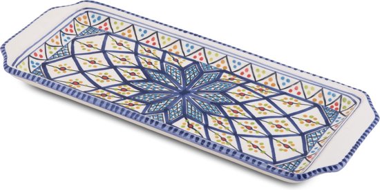 Bol à gâteau Shebka bleu blanc bol de service fait main 35 x 14 cm | CP.SH.30 | Plats & Déco