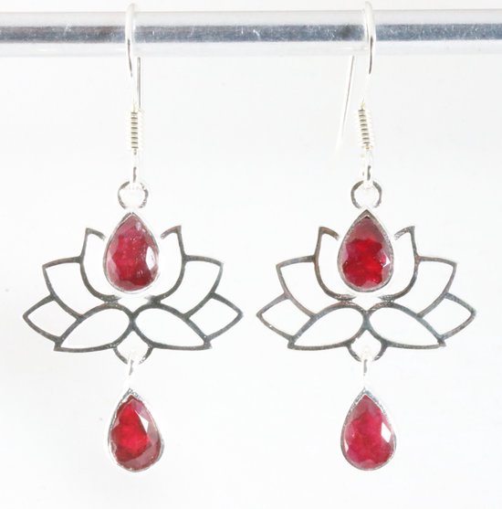 Boucles d'oreilles lotus en argent avec rubis