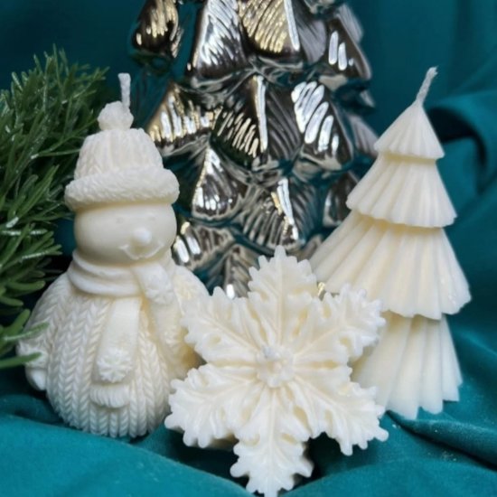 Minis Gifts | Ensemble de Bougies de Noël 3 pièces | Bougies Décoratives Sapin de Noël, Flocon de Neige et Bonhomme de Neige | Décor Hivernal & Cadeau