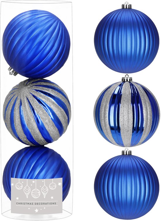 Boules de Noël | 3 pièces | 15 cm | Bleu | Argent