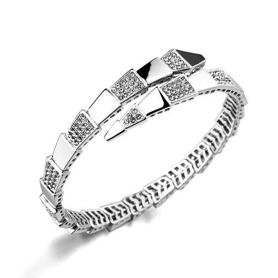 Lucardi - Bracelet femme serpent en acier avec fermeture coeur - Bracelet - Acier - Argent - 17 cm