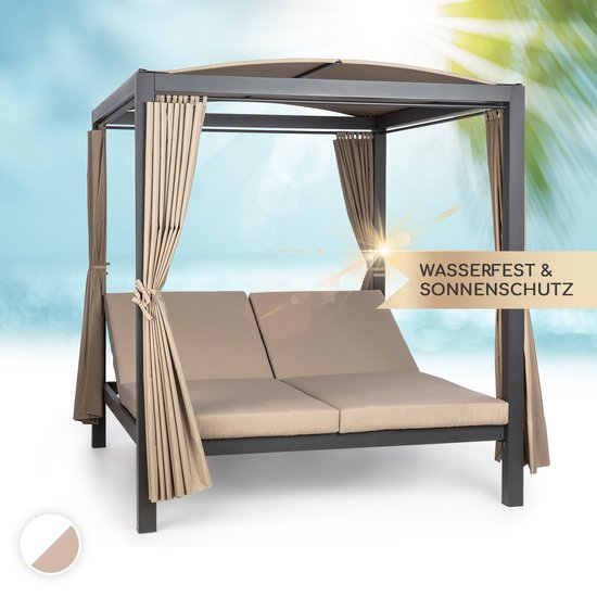 Blumfeldt Eremitage Double Sunbed structure en acier rideaux de toit ouvrant, plans de couchage parallèles alignés pour 2 personnes
