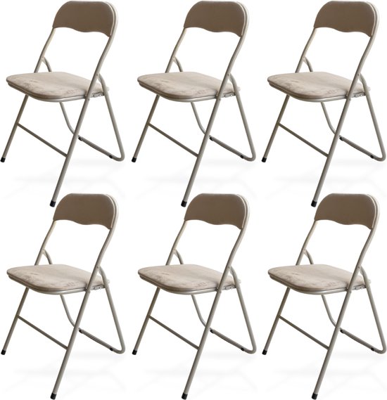 Trendy Meije Nova Chaises pliantes - Set de 6 - Chaises pliantes - Velours - Chaises de table à manger - Chaises pliantes - 80x44x47 CM - Chaises - Velours - Beige