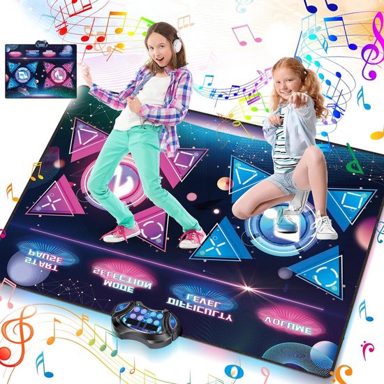Tapis de danse double - Tapis de jeu musical - avec effets lumineux - Comprend 12 jeux, 3 niveaux de difficulté, simple contre double. Double - Cadeau idéal pour les enfants