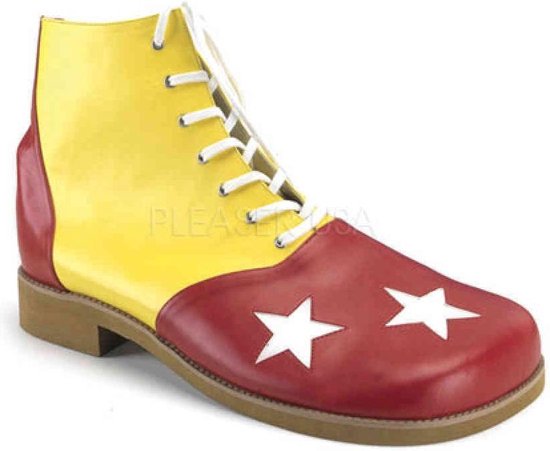 Taille unique | CLOWN-02 | Chaussure de clown adulte jaune-rouge Pu W / Wht Stars