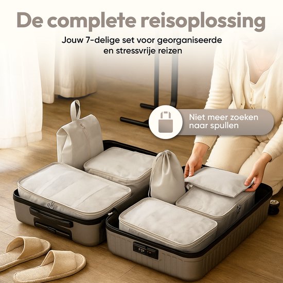 Cubes d'emballage Sunflake avec fermeture éclair de compression - 6 pièces - Mesh Zwart