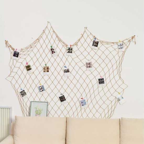 Filet de pêche décoratif - 2x2 mètres - Thème plage - Pour fêtes, salon et chambre à coucher - Fait main - Jaune ocre