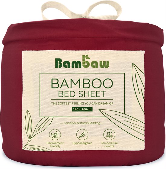Laken de Bamboe | Laken Eco 140 par 200cm | Bourgogne | Beddengoed de Luxe en Bamboe | Feuille hypoallergénique | Drap de lit Puur Bamboe lyocell| Tissu Ultra respirant | Bambaw