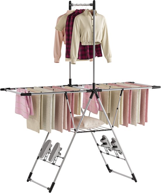 Meisterhome - Étendoir Extra large - pliable - Longueur de séchage de 25 mètres - Extra robuste et léger - Wasrek en acier au carbone - Jusqu'à 30 kg de linge